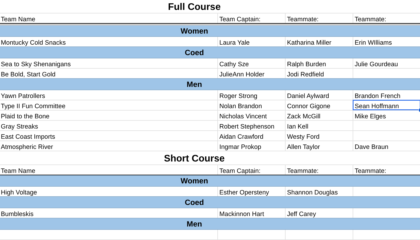We are ordering personalized team bibs on Sunday, 4/26, so make sure all your team’s information is correct and everyone has registered via Movemint. Here are the 11 teams we have competing thus far.